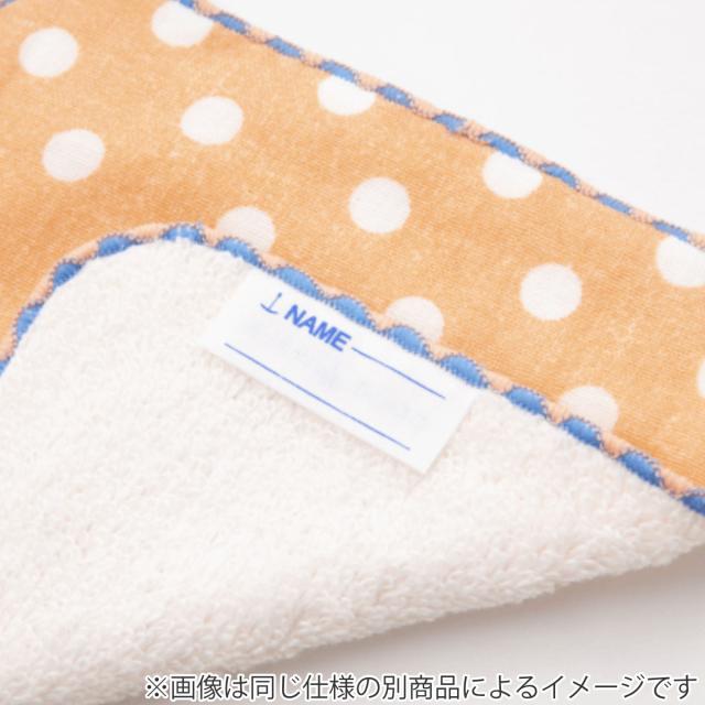 綿100%で、表は通気性が良く、軽くて柔らかいガーゼ素材で汗をよく吸い取ってくれます。裏はパイル糸によりをかけていない無撚糸を使っているため、ムースのようにふわふわ優しい素材です。裏面に名前を書くタグが付いているので、自分でタグを付ける必要がありません。