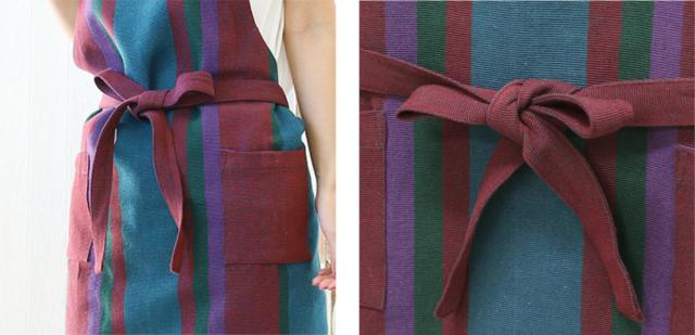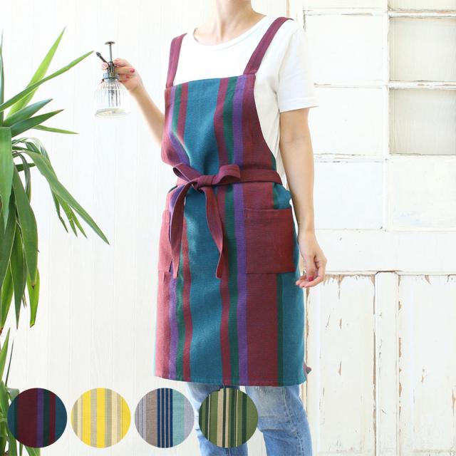 ●色鮮やかなストライプが印象的な、コットン製のエプロンです。