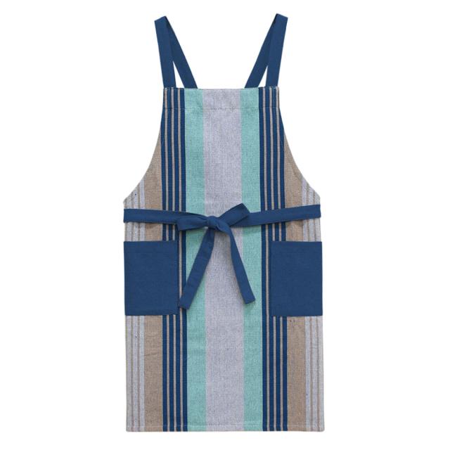 エプロン 綿 ラヤ ボーダー ポケット付き earthica ( アーシカル キッチンエプロン 台所エプロン カフェエプロン コットン 大人用 ショッピングバッグ 前結び リサイクルコットン おしゃれ キッチン用品 )