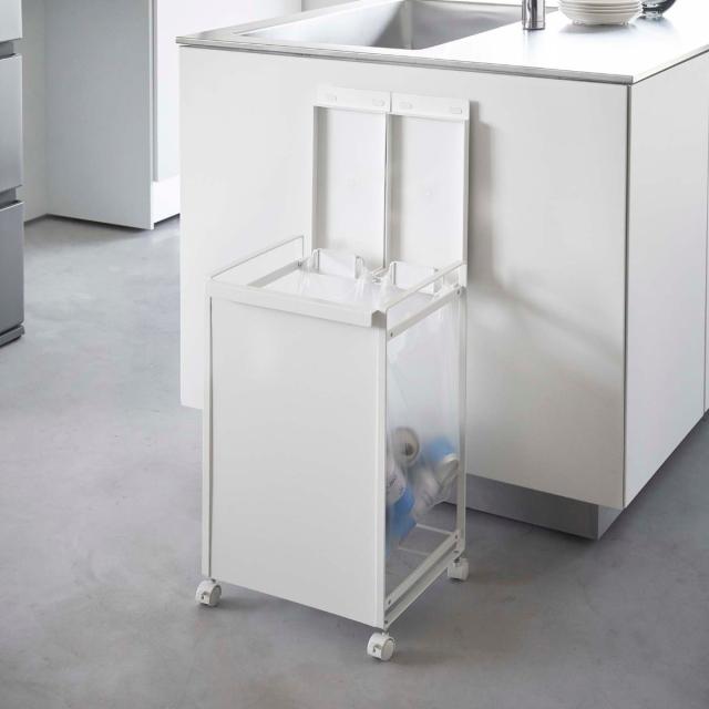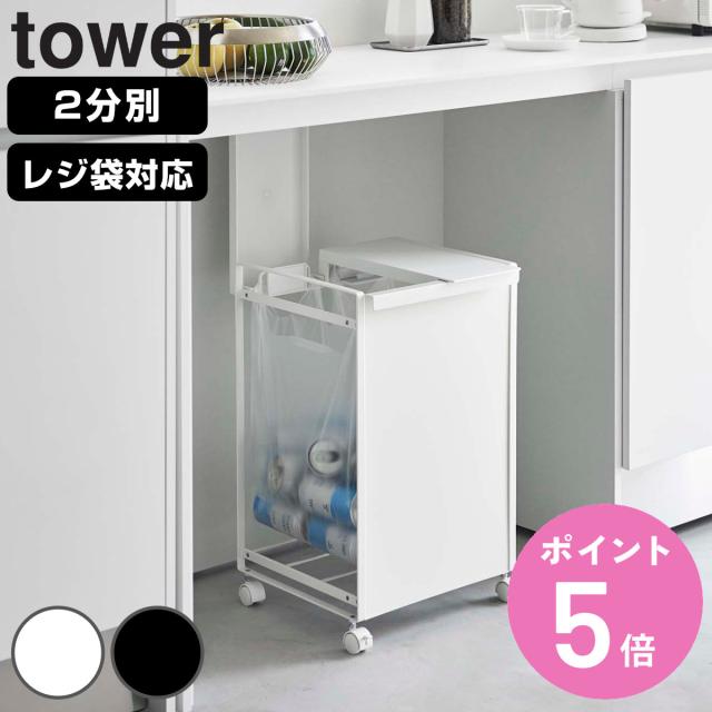 山崎実業 tower 蓋付き目隠し分別ダストワゴン 2分別 タワー ( 4903208059756 597 ごみ箱 ふた付き レジ袋ホルダー ダストワゴン 分別 ダストボックス 棚下 カウンター下 キャスター付き )