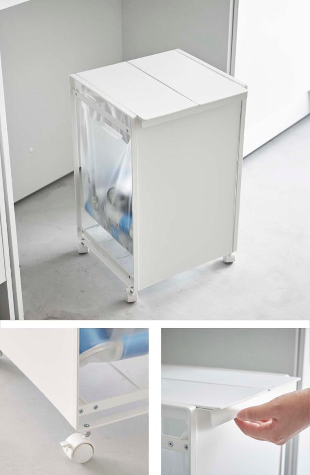 シンプルでインテリアに馴染むふた付きレジ袋ワゴン 2分別