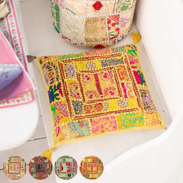 チェアパッド カンバディアパッチ SQチェアパッド 33×33cm 四角 ( クッション 椅子 インド 布 刺繍 パッチワーク 古布 シートクッション おしゃれ 座布団 スパンコール サリー クルタ 伝統衣装 イス パッド チェアクッション )
