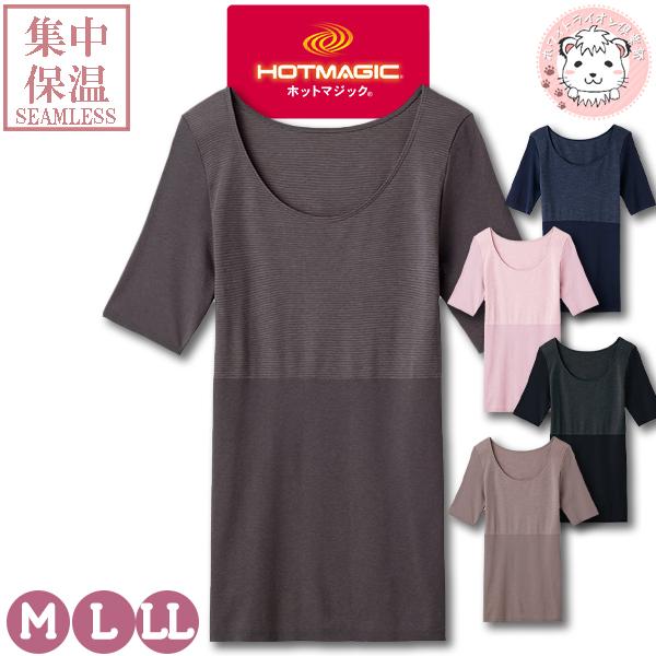半袖 5分袖インナー レディース グンゼ ホットマジック 集中保温シームレス 半袖インナー MH9448N 日本製 M/L/LL おためし