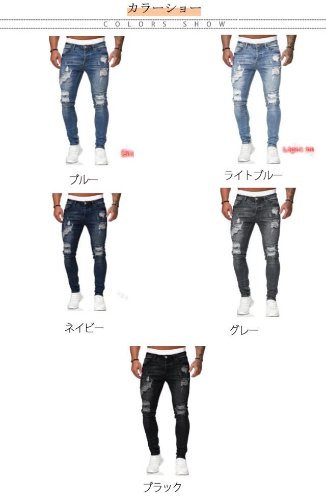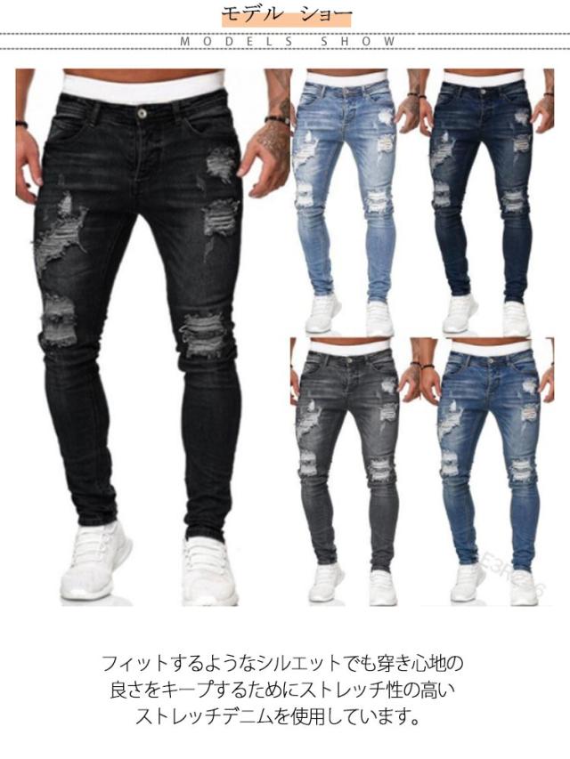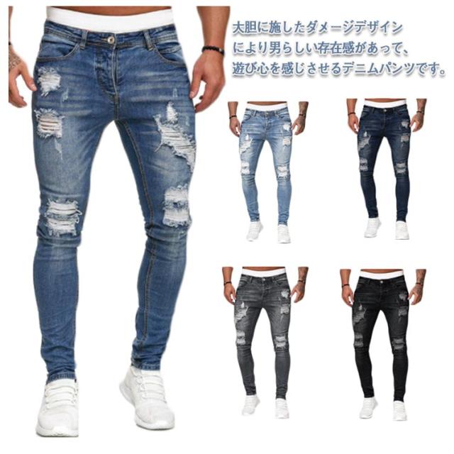 ダメージジーンズ メンズ スキニーパンツ デニムパンツ ダメージ加工 スキニー ジーンズ ストレッチ ダメージデニム ボトムス ロング パンツ スリム 細身 スキニー デニムパンツ ジーパン お兄系 ストリート系 B系 カジュアル おしゃれ かっこいい 春夏 秋服 秋 送料無料