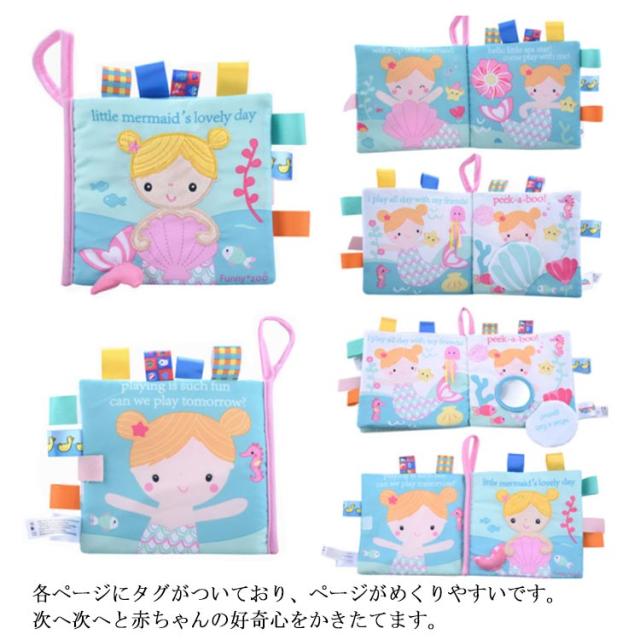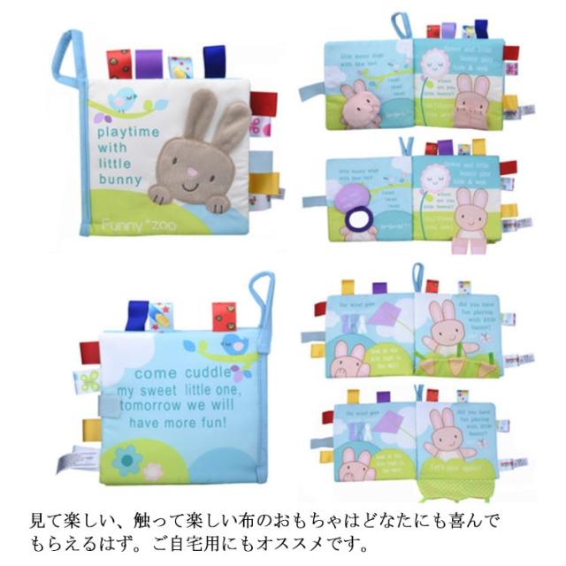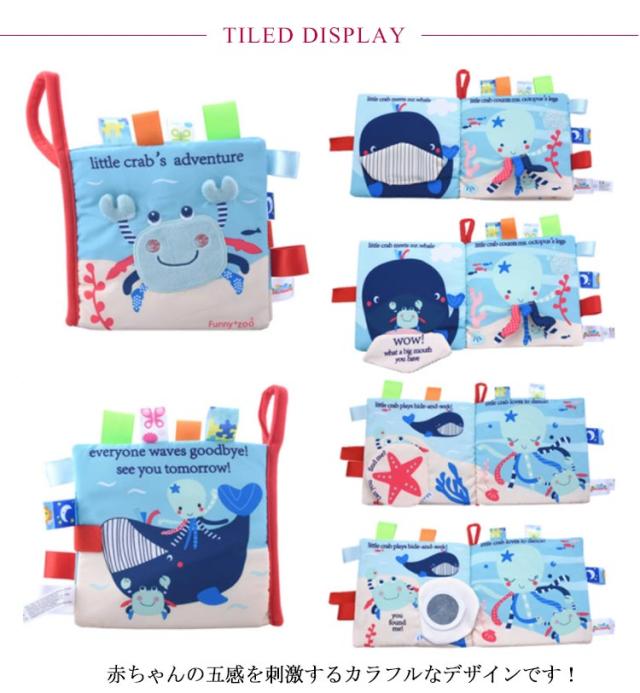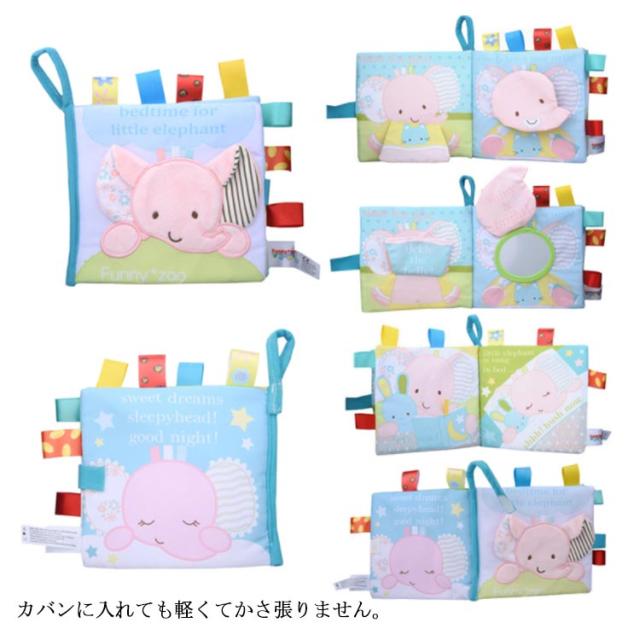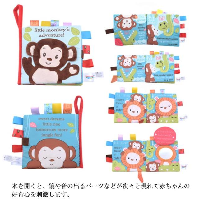 | はじめての絵本に!赤ちゃんがよろこぶしかけ布絵本。 赤ちゃんの五感を刺激するカラフルなデザインです! 本を開くと、鏡や音の出るパーツなどが次々と現れて赤ちゃんの好奇心を刺激します。 布絵本だから軽量!且つ繰り返し洗えて洗えるから衛生的!投げても、汚しても大丈夫! 各ページにタグがついており、ページがめくりやすいです。次へ次へと赤ちゃんの好奇心をかきたてます。 遊んでいるうちに自然と英語が身に付き、0歳〜3歳と幅広く使用できます。 ベビーカーやバギーにもつけられるので、外出時にも遊べます。 カバンに入れても軽くてかさ張りません。 見て楽しい、触って楽しい布のおもちゃはどなたにも喜んでもらえるはず。ご自宅用にもオススメです。 | |
