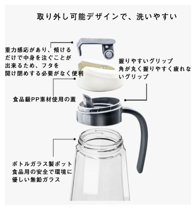 オイルボトル ビネガーボトル 調味料ボトル 詰め替え用調味料ボトル 密封性 醤油ボトル 調味料びん 自動開閉 重力感応 自動開け 680ml 700ml 900ml 油さし ガラス製 みりん 調味料入れ