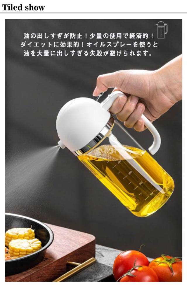 | 霧状で吹き出すので、フライパンなどにむらなく吹き付けられますし、サラダにオリーブオイルをかける場合にも便利です。 油の出しすぎが防止!少量の使用で経済的!ダイエットに効果的!オイルスプレーを使うと油を大量に出しすぎる失敗が避けられます。 目盛がついているので、油を使う量が分かりやすく便利です。密封構造を採用し、逆さまにしても油が漏れません。 透明なガラス製で、プラスチックに比べると表面の汚れが落としやすく、食器洗い用洗剤で簡単に綺麗にできるので、お手入れがやすいです。耐熱ガラスですので、うっかり火のそばに置いてしまっても安心です。 | |