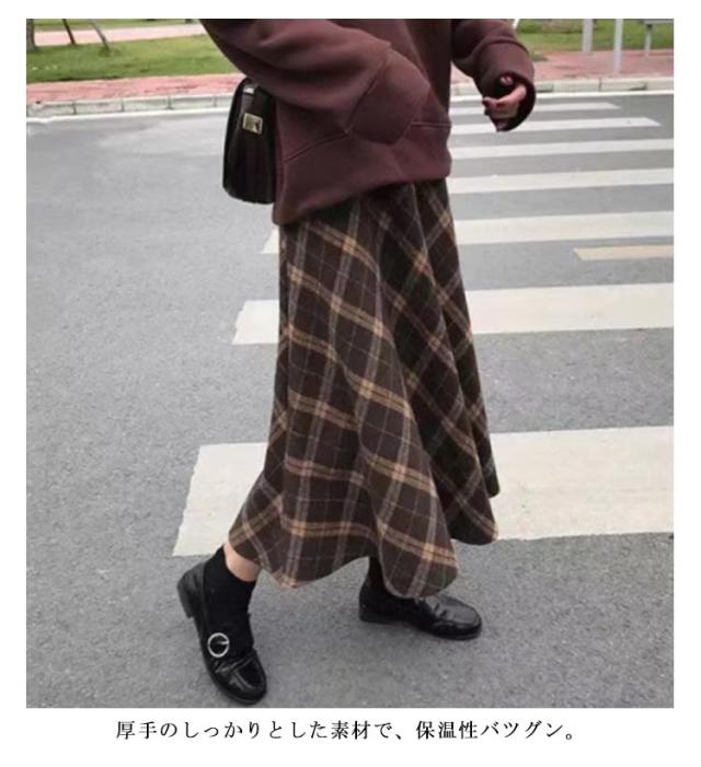 チェックスカート チェック柄 スカート 秋冬 ミモレ丈 チェック 柄 ニット レディース フレア Aライン ハイウエスト フレアスカート 秋冬 ミモレ丈スカート ロングスカート 上品 ロング 大きい サイズ ブラウン 送料無料