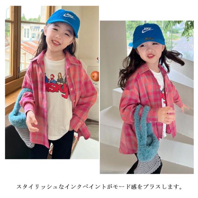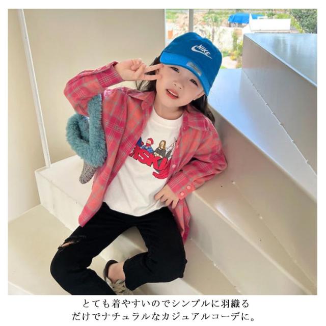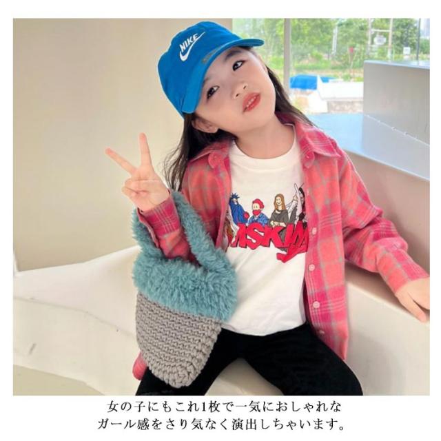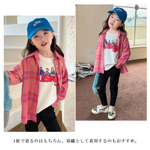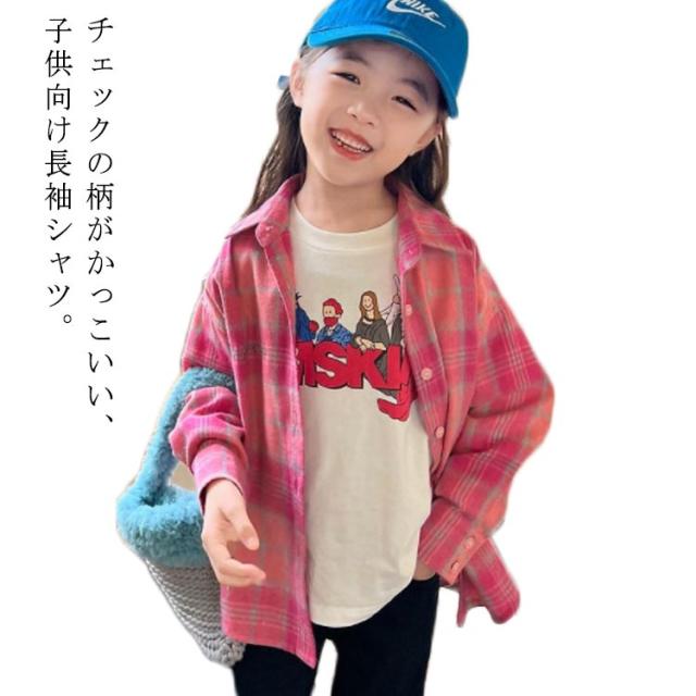 送料無料 チェックネルシャツ キッズ 子供 子供シャツ 長袖シャツ チェックシャツ トップス 子供服 長袖 チェック柄 ジュニア 女の子 フランネルシャツ ウエスタンシャツ アメカジ 春秋 ピンク キッズシャツ