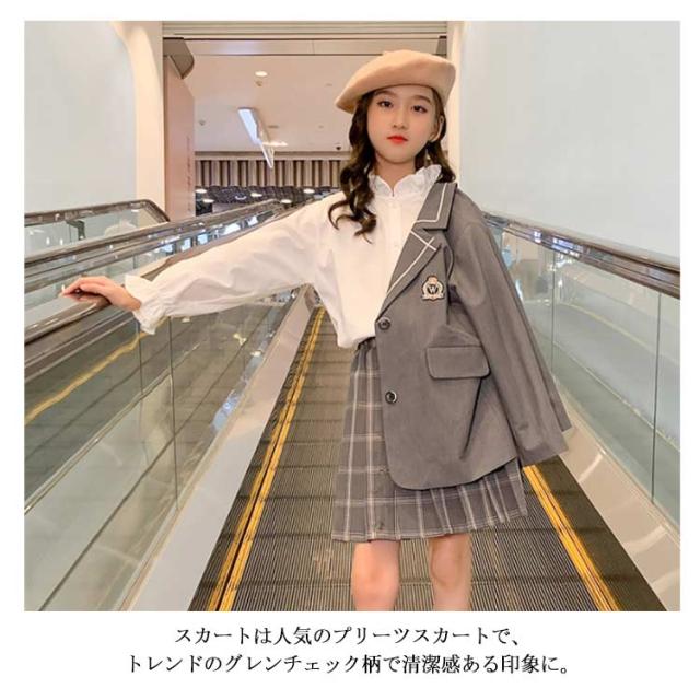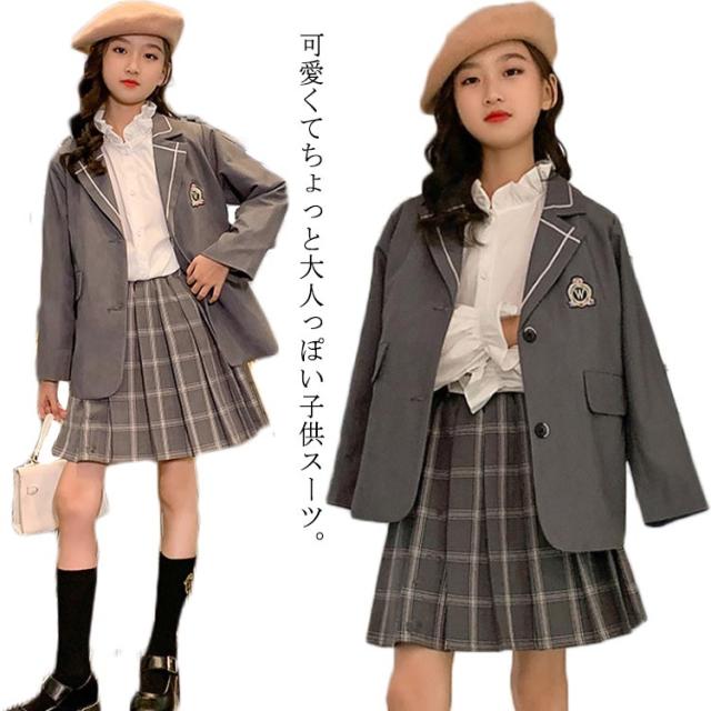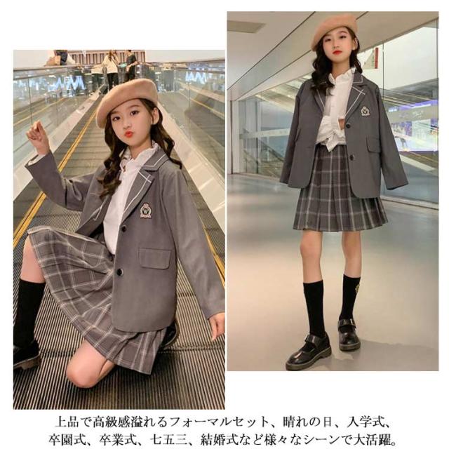 卒業式 スーツ 女の子 110-170cm ピアノ発表会 七五三 フォーマル 韓国 子供服 ジュニア セットアップ 子供スーツ 入学式 入園式 キッズ チェック スカート ジャケット 撮影用