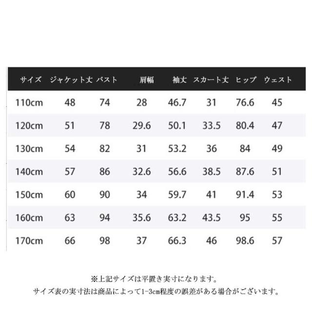 | 素材 | ジャケット:ポリエステル76.1% レーヨン18% ポリウレタン5.9% スカート:ポリエステル |