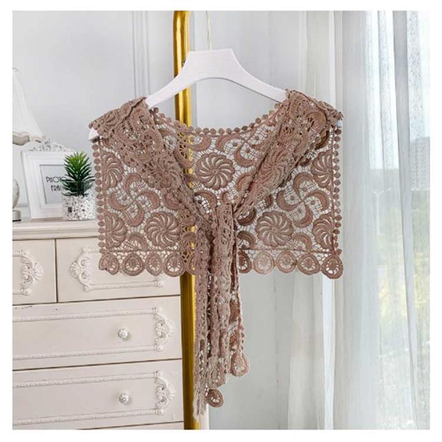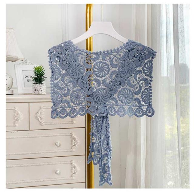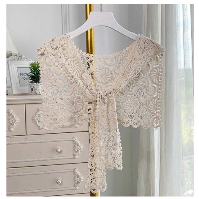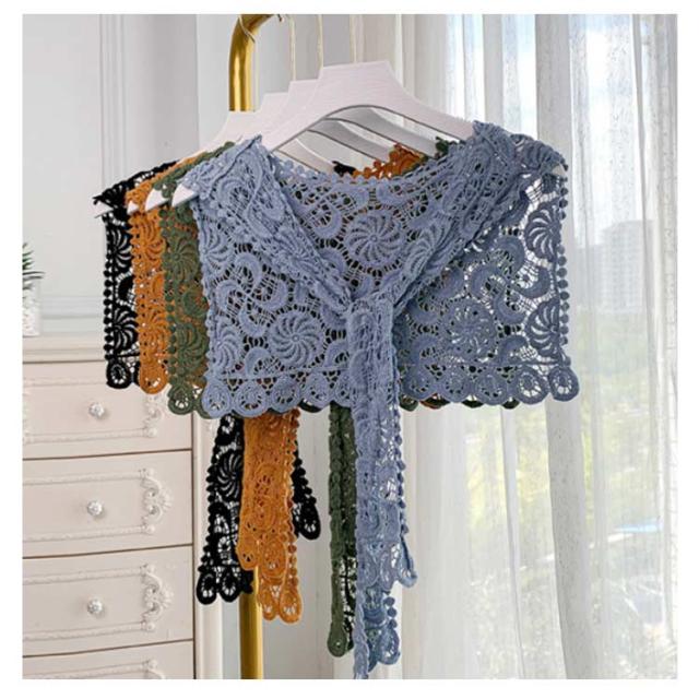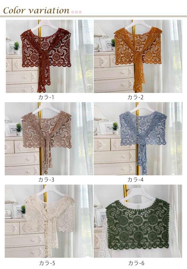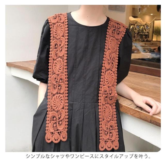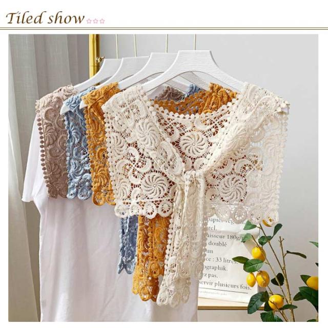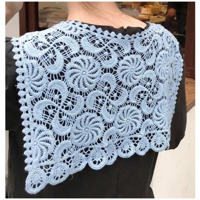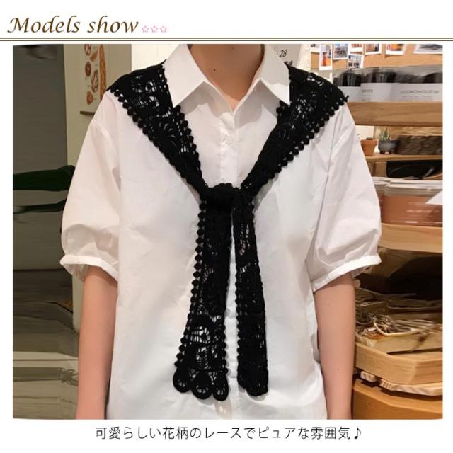 ストール 付け襟 つけ衿 セーラー風 レディース スクエア型 つけ襟 肩掛け 総レース 花柄 重ね着風 レイヤード お洒落 可愛い 春夏秋冬 シンプル ブラウス シャツ キレイめ フラワーレース ファッション小物 送料無料