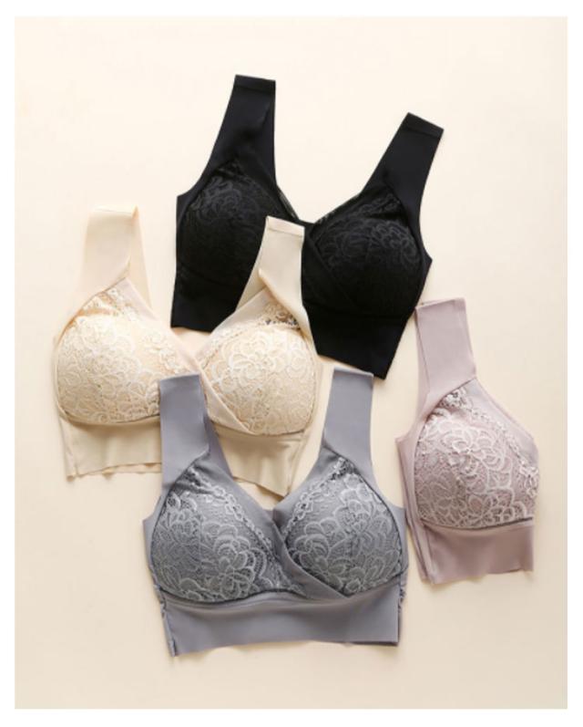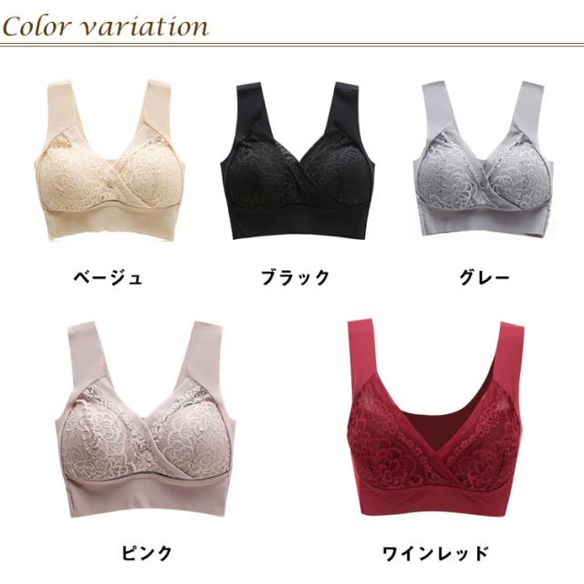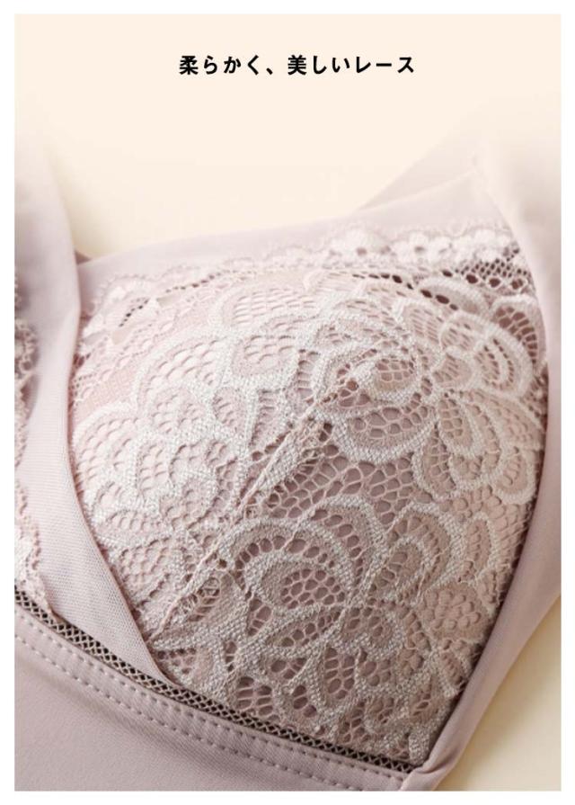 | 一度使用したら病みつきのノンワイヤーブラ。 触りの良い細やかなスムース編みでストレスの少ない付け心地。 ノンワイヤーでもバストをしっかり覆ってしっかり支えます。 胸の横流れを防ぎ美胸維持。 レ一スを使ったキュ一トなデザインと豊富なカラ一バリエ一ションも魅力です。 ナイトブラとしてはもちろん、育乳ブラ、ヨガブラ、スポーツブラとしてもおすすめです。 | |
