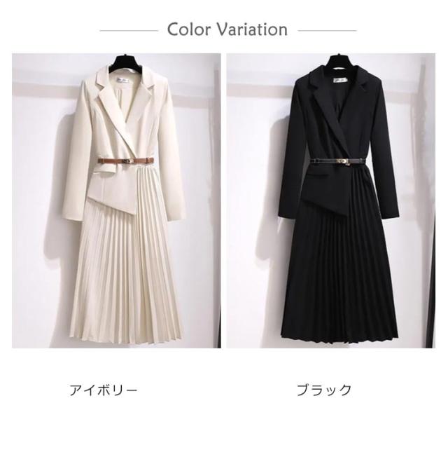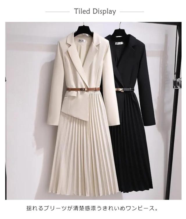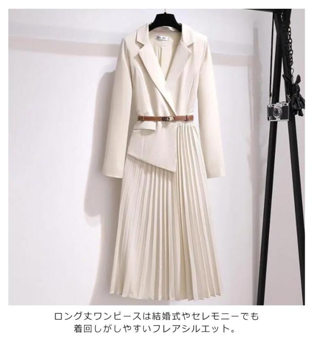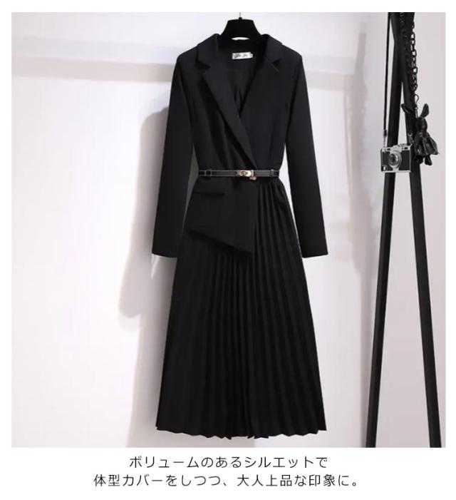 【送料無料】ワンピース 長袖 スーツワンピース プリーツワンピース ロング丈 レディース 40代 テーラードジャケット 切り替え 春 秋 セレモニー フォーマル ワンピース お呼ばれ 結婚式 エレガント きれいめ ブラック 黒