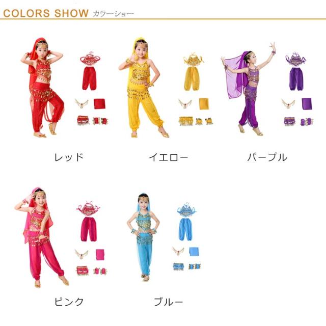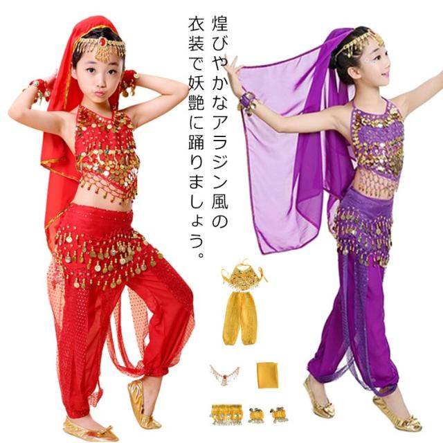 キッズ コスプレ衣装 アラジン風 民族衣装 7点セット ダンス衣装 ステージ衣装 ハロウィン コスチューム 女の子 可愛い 異国風 民族風 仮装 こども 子ども 大きいサイズ イベント クリスマス 誕生日 学園際【送料無料】