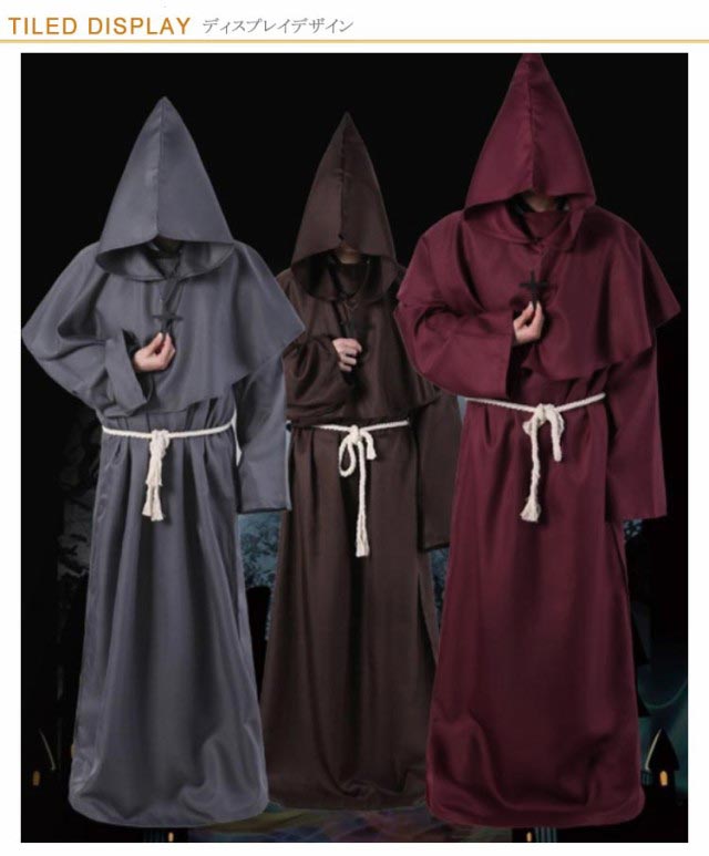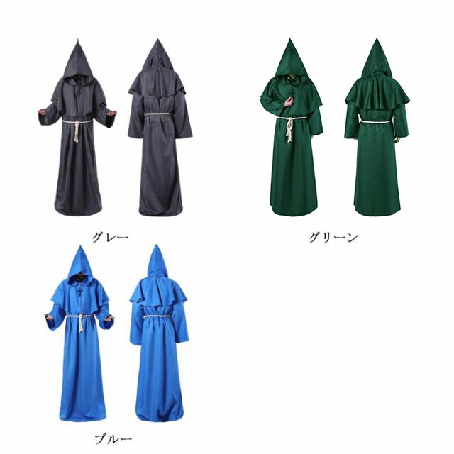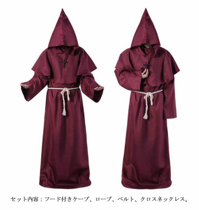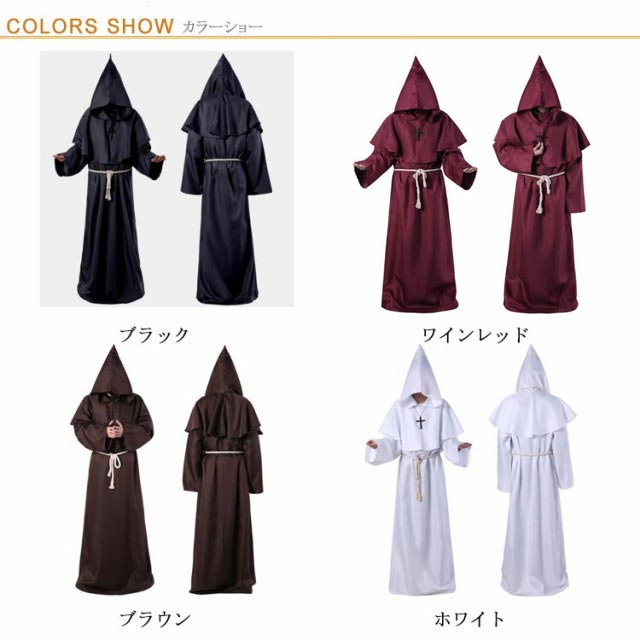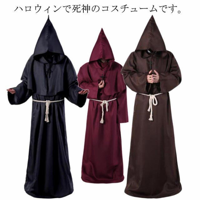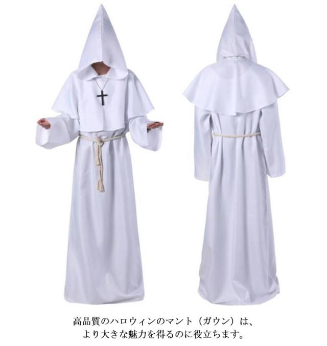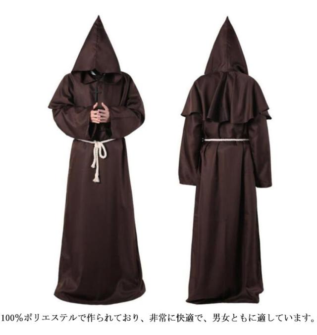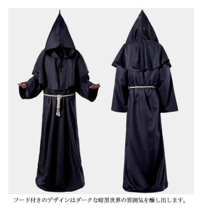 S-XL コスプレ 牧師服 死神服 僧侶服 修道士服 魔法使い マント ロングローブ フード付き コスプレ衣装 コスチューム ハロウィン レディース メンズ 大人 なりきり 霊媒服 修道服 イベント クリスマス パーティー 【送料無料】