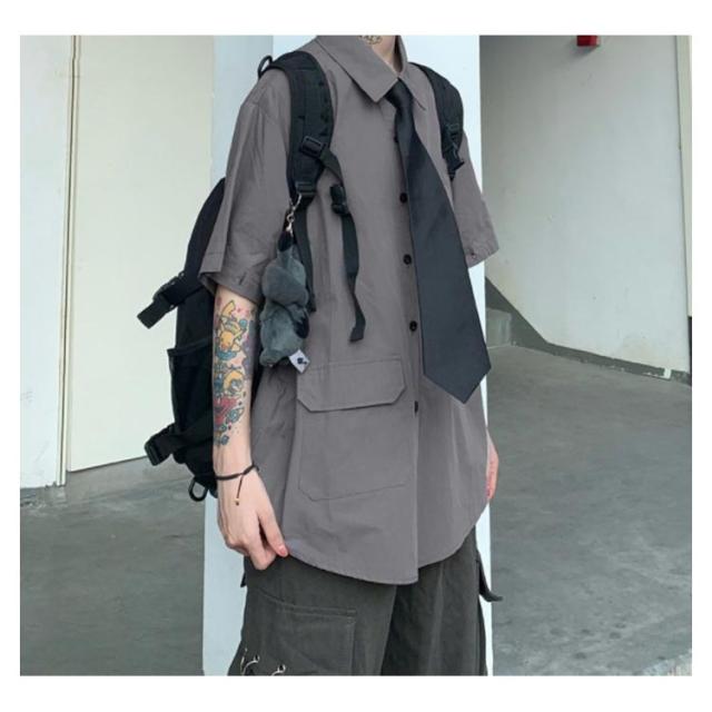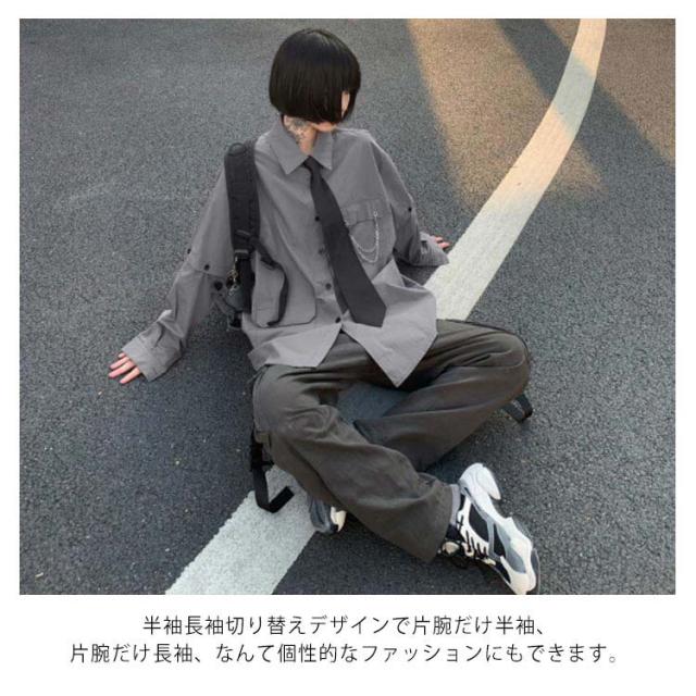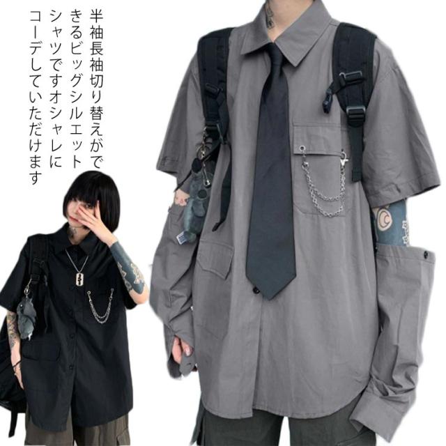 | 半袖長袖切り替えができるビッグシルエットシャツですオシャレにコーデしていただけます ネクタイ付きでフォーマル感もプラス デイリーからダンスウェアやライブ、コンサート、フェス用まで幅広く使える1枚です 半袖長袖切り替えデザインで片腕だけ半袖、片腕だけ長袖、なんて個性的なファッションにもできます。夏は半袖、冬は長袖とオールシーズンお使いいただけます ボトムスは何を合わせてもクールに決まるので 普段着にもオススメです | |