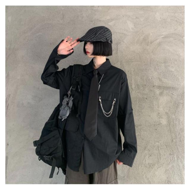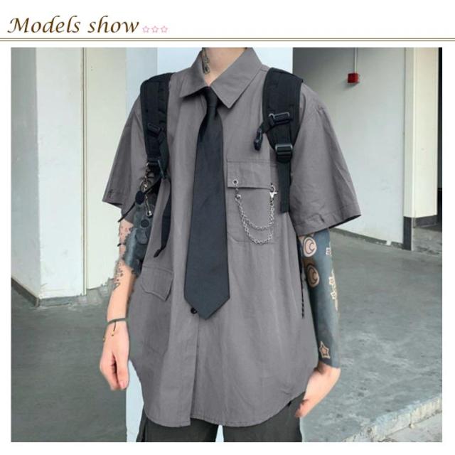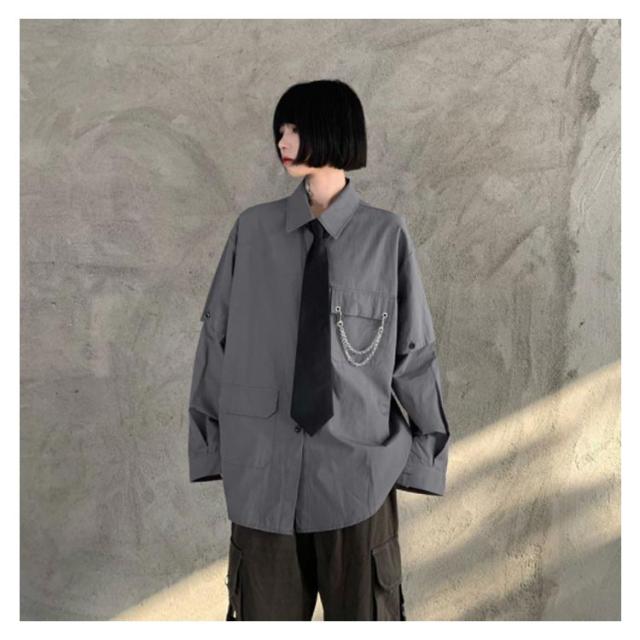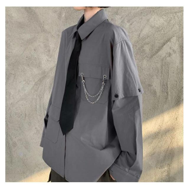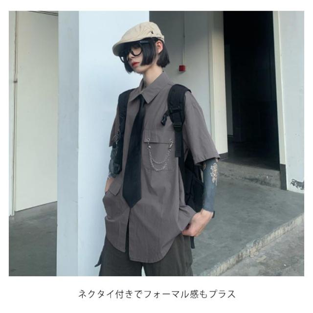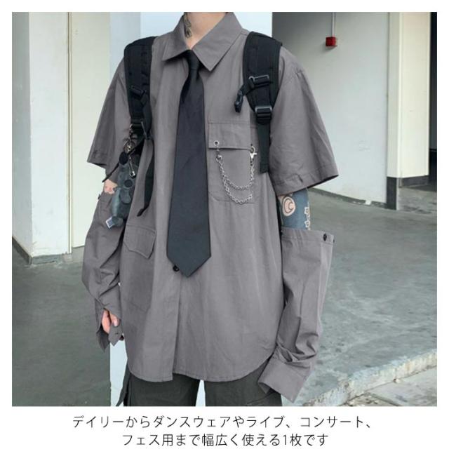 メンズ シャツ メンズシャツ 春秋 薄手 3点 飾りチェーン付き ネクタイ付き 半袖 長袖 袖取り外し可能 男女兼用 韓国 トップス ステージ衣装 ヒップホップ ダンス衣装 ストリート ファッション モード系
