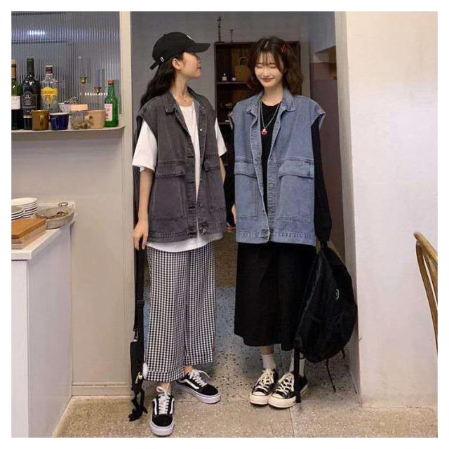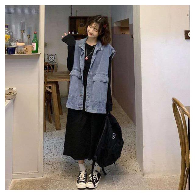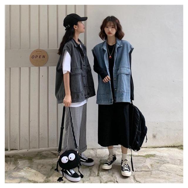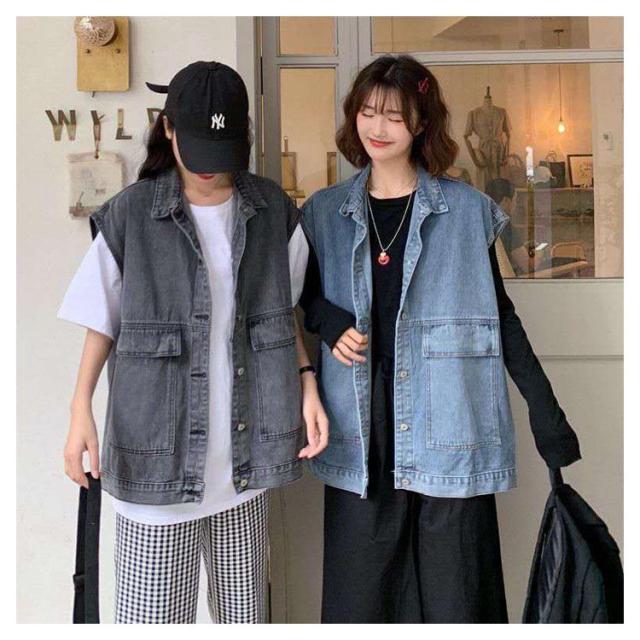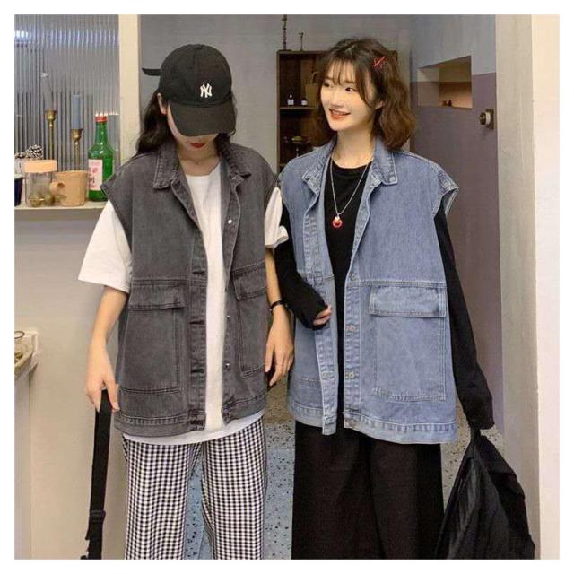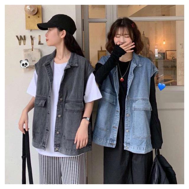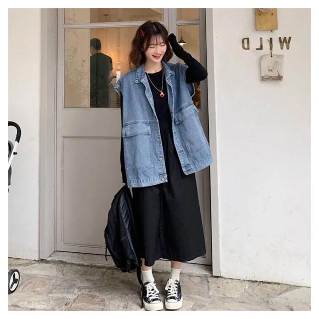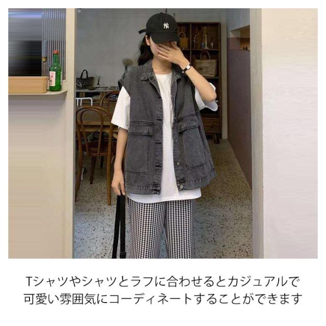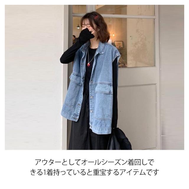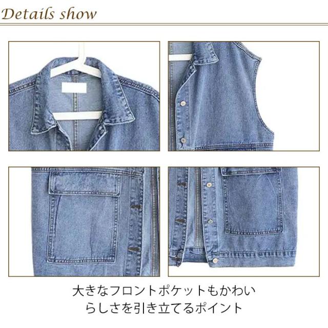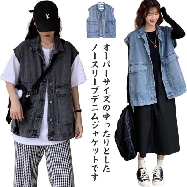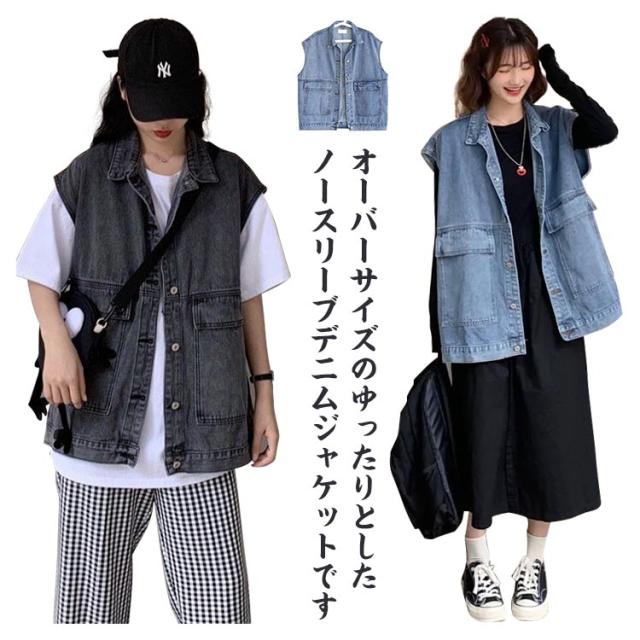 デニム アウター ベスト レディース ノースリーブ 春秋 ジージャン アウター ジャケット ジージャン オーバーサイズ ダンス衣装 Gジャン 可愛い 学院風 無地 トップス 女性 カジュアル お出かけ ファッション感 普段着
