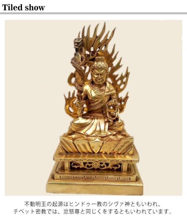 不動明王 像 不動明王像 仏像 黄銅製 高約21cm×幅12cm×奥行8cm 豪華な火炎光背 四角台火炎光背仏像 真言宗脇侍 お不動様 仏壇 御本尊 密教 大日如来の化身 お不動さん