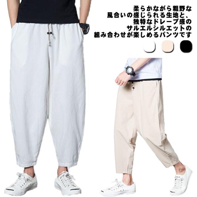 送料無料 シェフパンツ ワイド パンツ ボトムス イージパンツ メンズ チノパン ワイドパンツ サルエルパンツ クロップドパンツ 大きいサイズ リラックス パンツ ストレッチ ウエストゴム テーパードパンツ ゆったり カジュアル