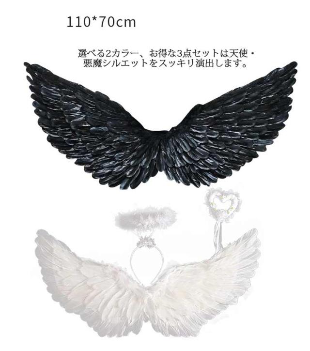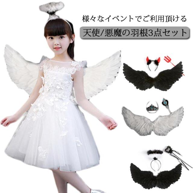 【送料無料】ハロウィン 衣装 子供 コスプレ 悪魔の翼 悪魔 天使の羽 ホワイト ブラック キッズ イベント 3点セット ウェディング 結婚式 プレ花嫁 かわいい コスチューム 仮装パーティー 発表会 演出 撮影 記念写真 女の子 誕生日 プレゼント ギフト