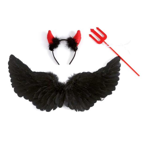 | 様々なイベントでご利用頂ける天使/悪魔の羽根3点セット かわいい天使の羽根で思い出に残る演出に! ウィングにゴムがついていて背負うようなスタイルで使用します。 選べる2カラー、お得な3点セットは天使・悪魔シルエットをスッキリ演出します。 ハロウィンだけでなくダンス衣装や劇の衣装にもオススメです。 | |