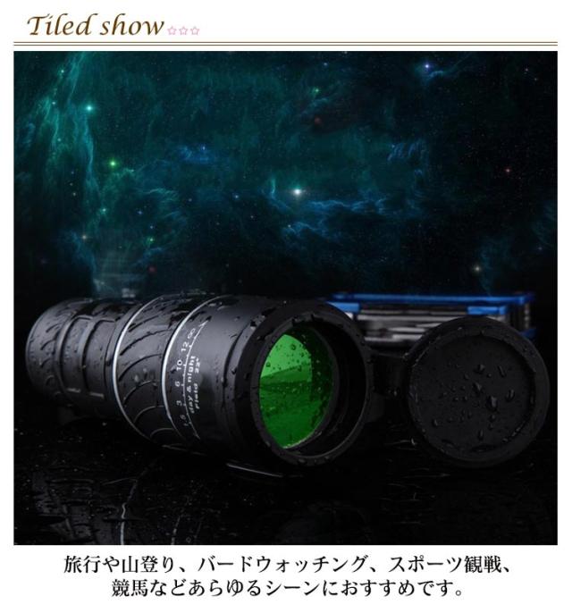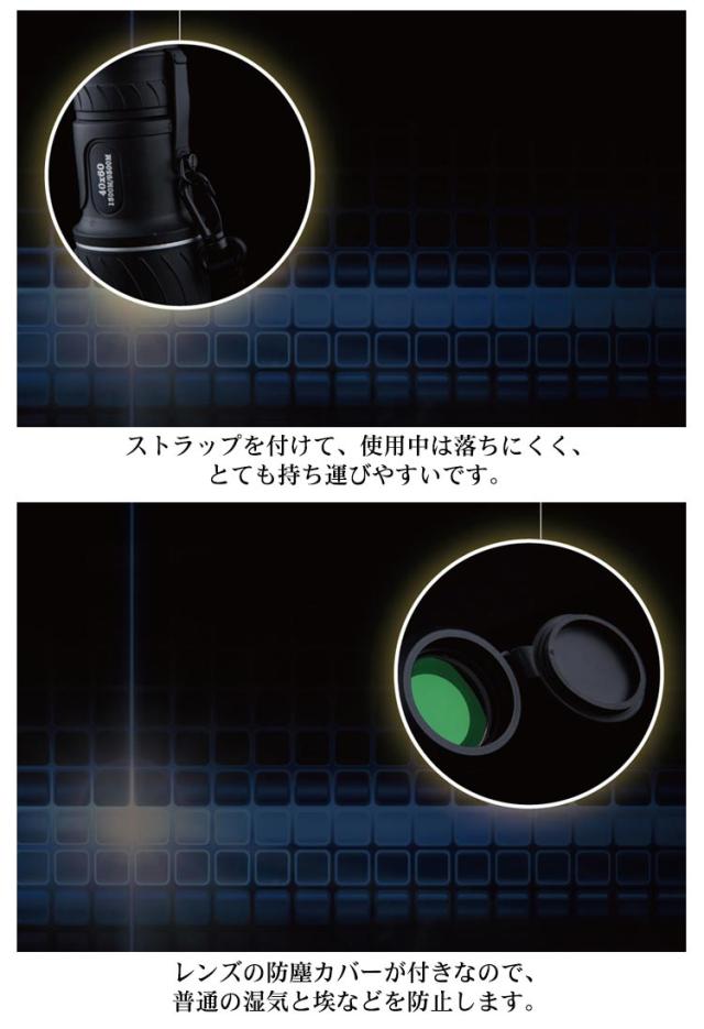 単眼鏡 単眼望遠鏡 40x60 BAK4プリズム FMCレンズ 高倍率 耐衝撃 携帯便利 防塵カバー ストライプ付き コンパクト アウトドア 野生動物観察 山登り コンサート スポーツ観戦 花火大会 昼夜兼用 防水 送料無料