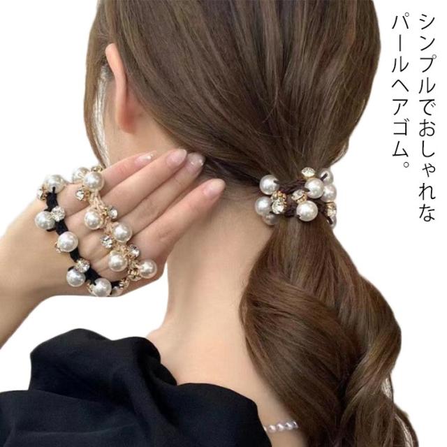 ヘアゴム パール シンプル ヘアアクセサリー まとめ髪 レディース ヘアポニー ヘアアクセ 髪飾り 大人 オフィス 女子力 パーティー 女性 上品 送料無料