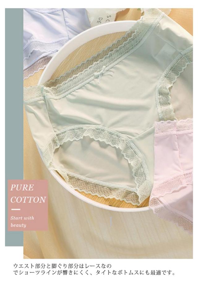 2枚セット!ショーツ スタンダードショーツ レディース 女の子 女性用 インナー パンティ 下着 パンツ 無地 伸びる 可愛い レース リボン やわらか 締め付けない 快適 履きやすい おしゃれ 肌着 中学生 高校生 送料無料