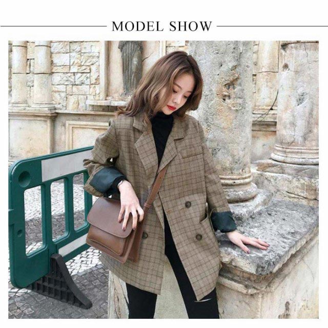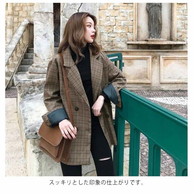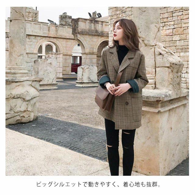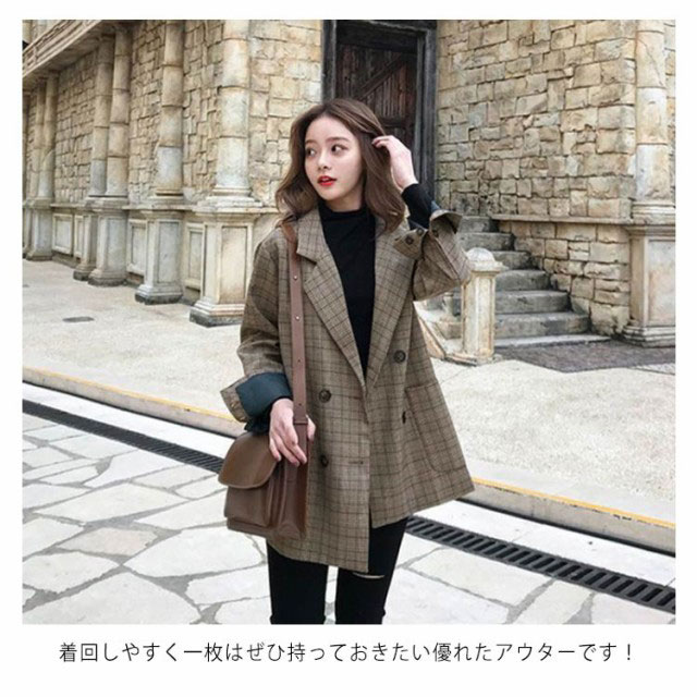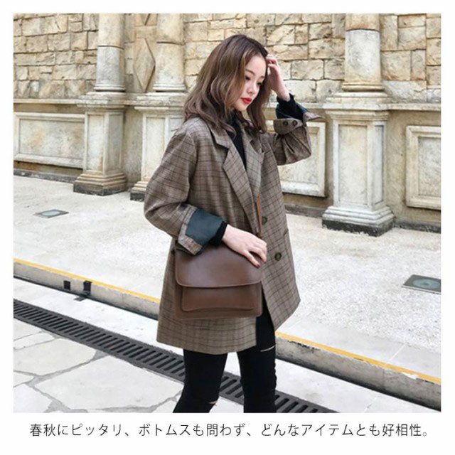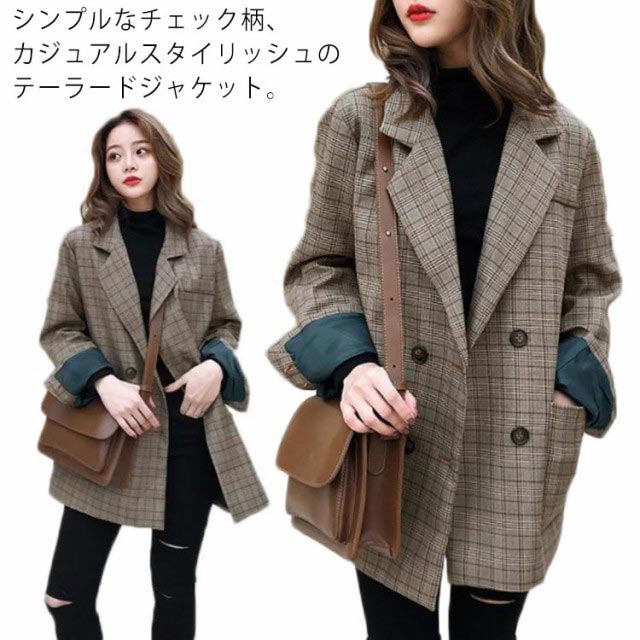 グレンチェック テーラードジャケット レディース コート アウター 長袖 スーツジャケット お洒落 可愛い ルーズ ブルゾン 春 秋 秋コーデ 上品 通勤 通学 S M L XL 2XL 3XL
