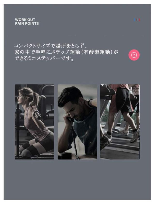 | おうちで手軽にステップ運動 コンパクトサイズで場所をとらず、家の中で手軽にステップ運動(有酸素運動)ができるミニステッパーです。 美脚エクササイズ、ヒップアップ、足腰の強化、体力アップなど、目的に合わせてフィットネス! 滑らかな動作で腰や膝、関節の負担なく運動可能 ステップ動作が静音&なめらか。腰や膝、関節に負担をかけることなく運動が継続できます。 滑り止めもついていて安心です。 | |