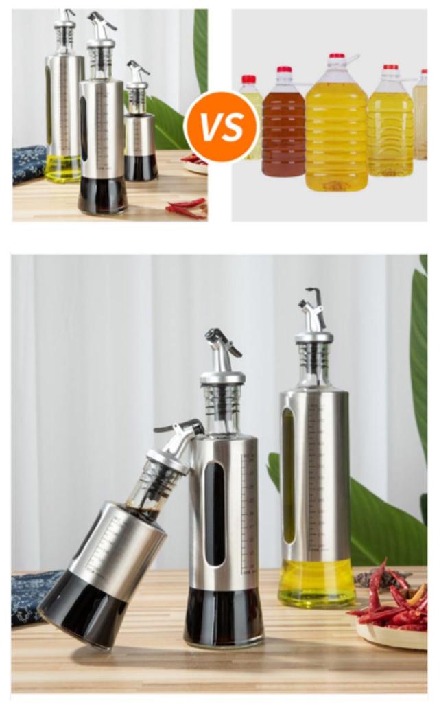 | ボトル部分には刻みの目盛りがついています。 オイルだけではなく、醤油や他の調味料用にも計らずに注げて、便利です。 油を注ぎ終えた後、漏れた液が注ぎ口の後ろの穴へ入り、本体へ戻る構造になっているので漏れることや液だれもしません。 大きな開口部デザインで、注ぎやすい、洗いやすい。 | |