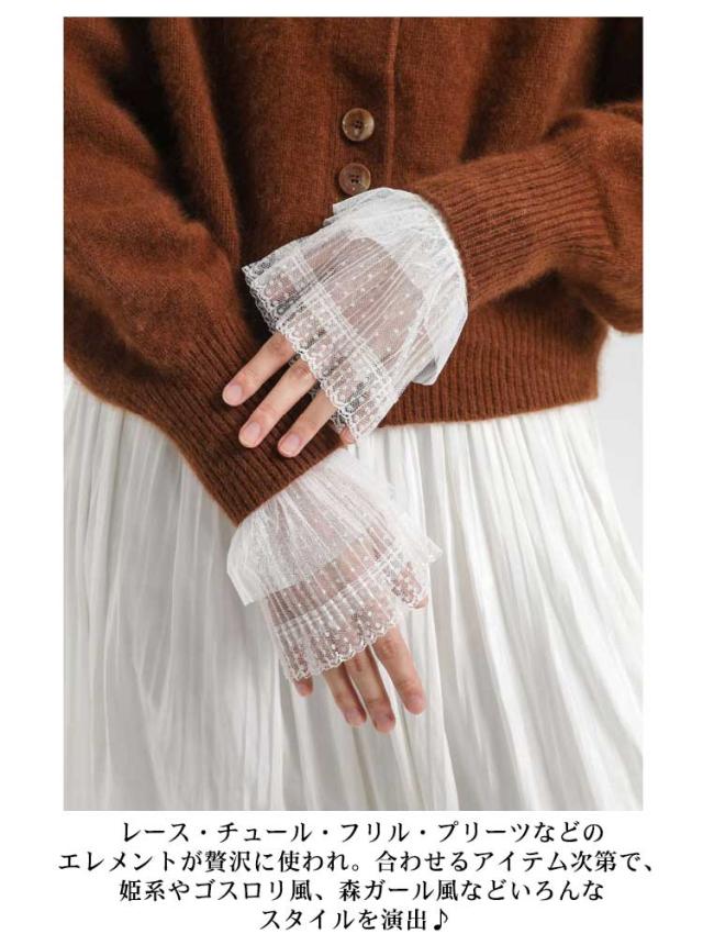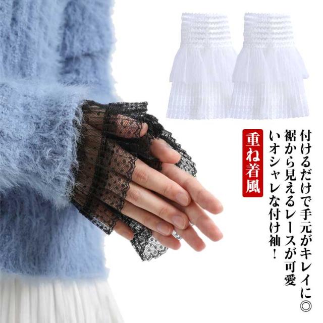 送料無料 付け袖 レース カフス レディース 付け袖口 つけそで チュール レース 重ね着風 袖 姫系 ふんわり フリル 二重袖 レイヤード アクセサリー ロイヤル 森ガール 春 秋 冬 ロリータ 服 大人可愛い おしゃれ