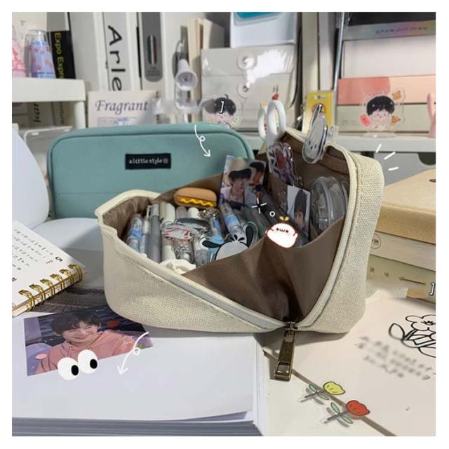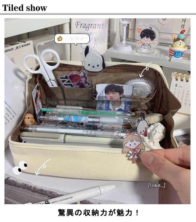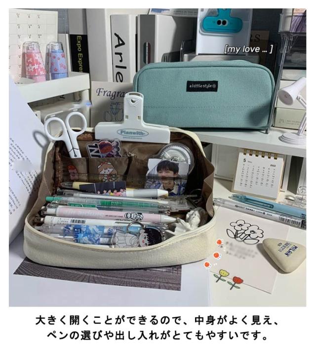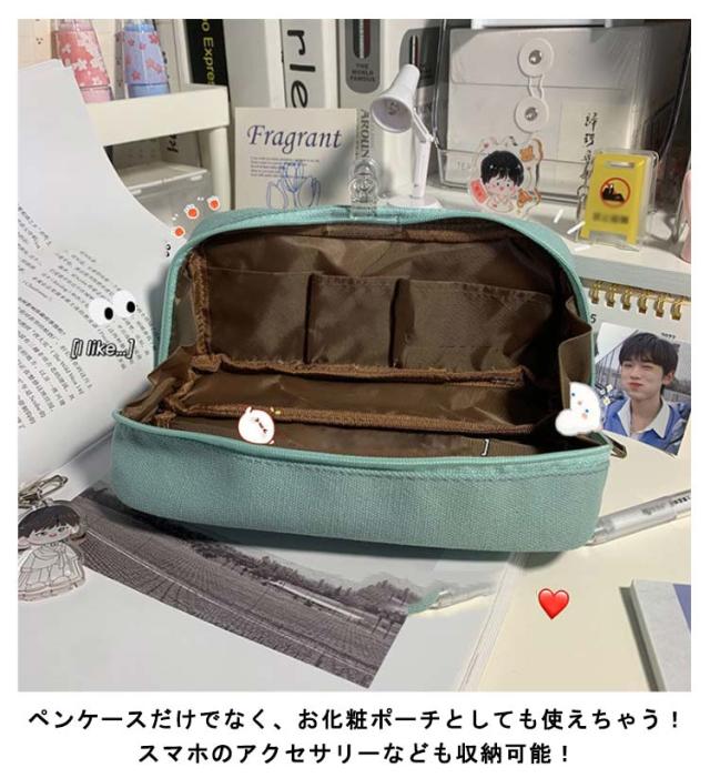 | 驚異の収納力が魅力! 大きく開くことができるので、中身がよく見え、ペンの選びや出し入れがとてもやすいです。 お気に入りの文房具をたっぷり詰め込めこんで、楽しく勉強しよう! ペンケースだけでなく、お化粧ポーチとしても使えちゃう! スマホのアクセサリーなども収納可能! | |