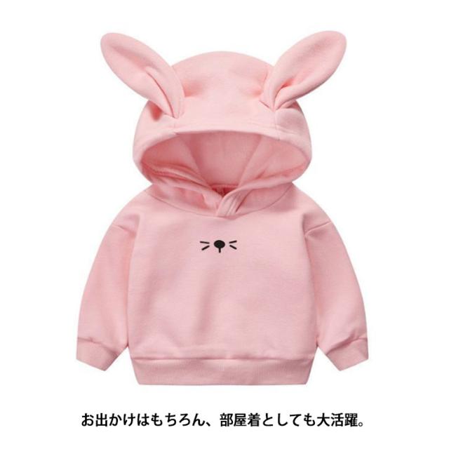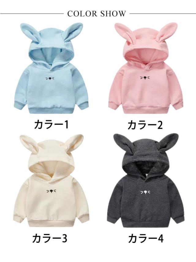 キッズ パーカー プルオーバーパーカー アウター うさぎ ジュニア 長袖 秋冬 子供服 綿 ベビー服 ベビーウェア 男の子 女の子 耳付きフード うさ耳 着ぐるみ風 80 90 100 110 120