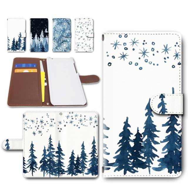 らくらくスマートフォン me F-01L ケース 手帳型 カメラ穴搭載 水彩 ツリー 雪結晶 柄 冬 ウィンター おしゃれ F-42A らくらく ケース 手帳型ケース 手帳 カバー