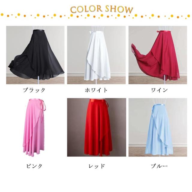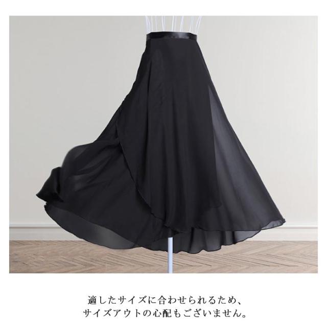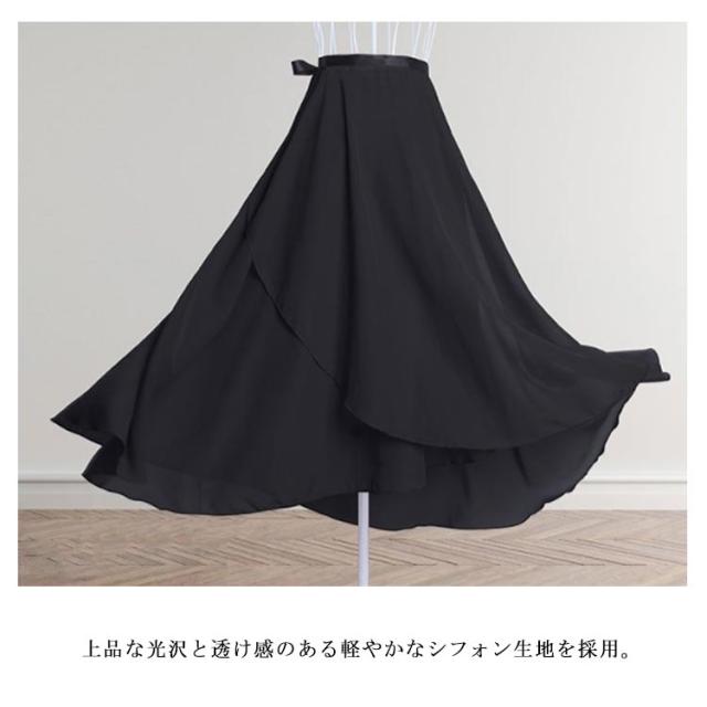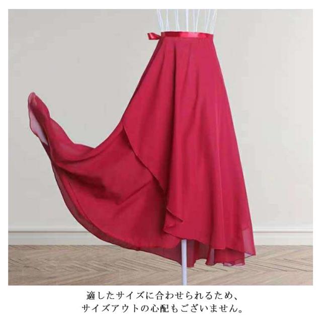 ふんわりシフォンが華やか♪ラップスカート ふんわり 80cm丈 バレエ ロングスカート 巻きスカート レディース 大人 ジュニア バレエスカート バレエ用スカート シフォン スカート チュチュ ダンススカート 無地 フリル 紐 ミディアム ロング 練習 送料無料
