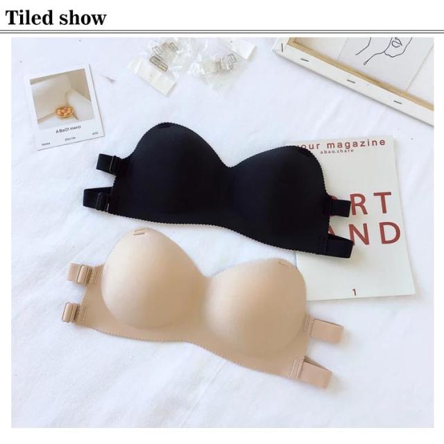 ストラップレスブラ バストアップ ブラトップ 肩ひもなし チューブトップ ブラ カップ付き ノンワイヤー ずれない 透明ストラップ ノンワイヤーブラジャー ワイヤレスブラ 谷間 脇高 背中見せ 洋服 ドレス 結婚式 送料無料