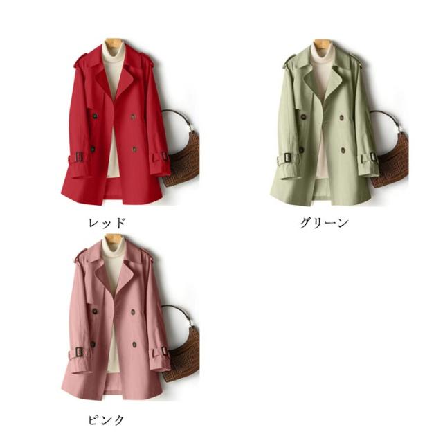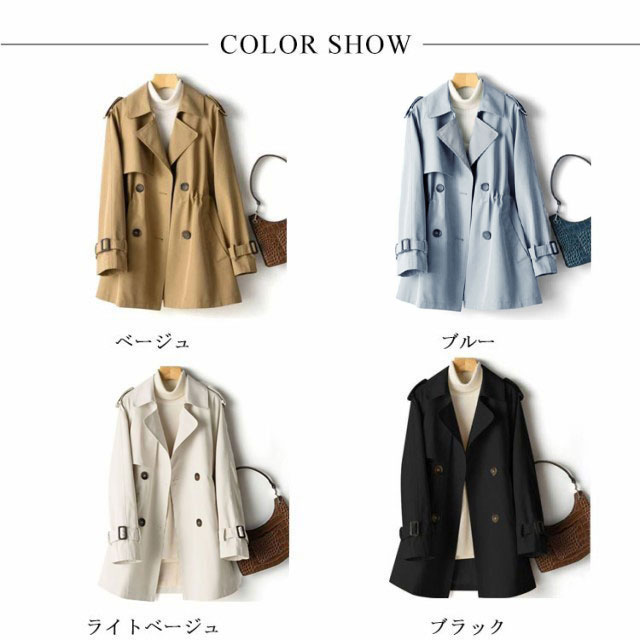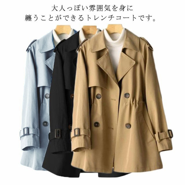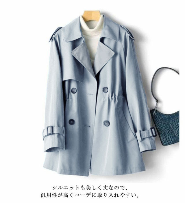 レディース トレンチコート スプリングコート 秋 冬 コート ショート丈 フォーマル ビジネス ライトアウター 大きいサイズ 春アウター シャーリング シンプル 裏地付き M L XL 2XL 3XL 4XL