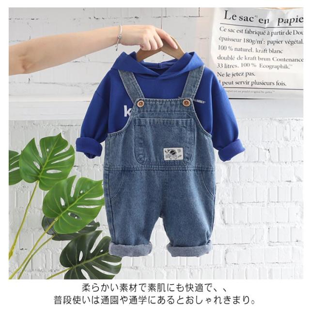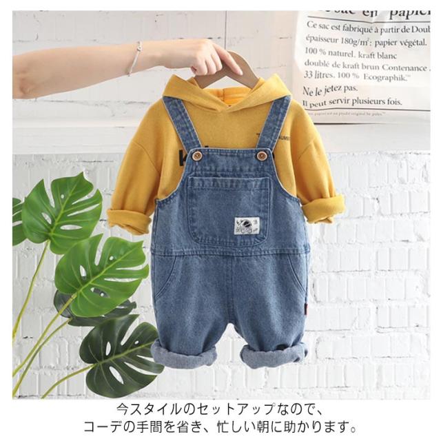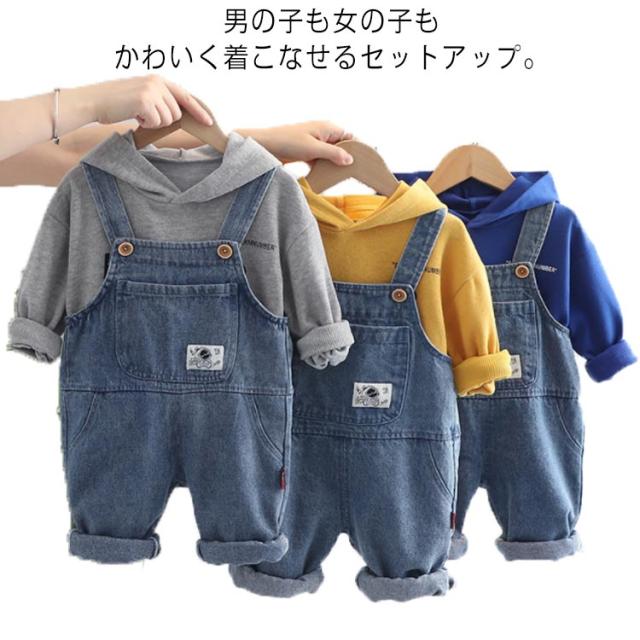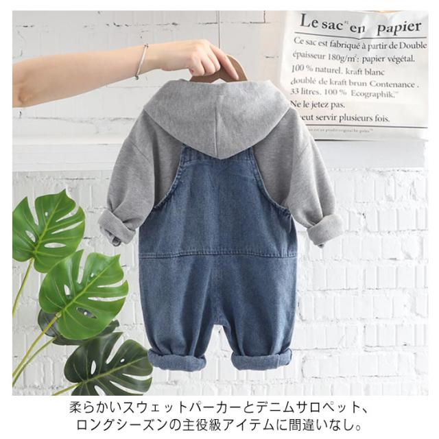 セットアップ 子供服 オーバーオール デニム サロペット パーカー スウェット 上下セット 2点セット 男の子 女の子 ベビー服 オールインワン 赤ちゃん 春 秋 1歳 3歳 6歳