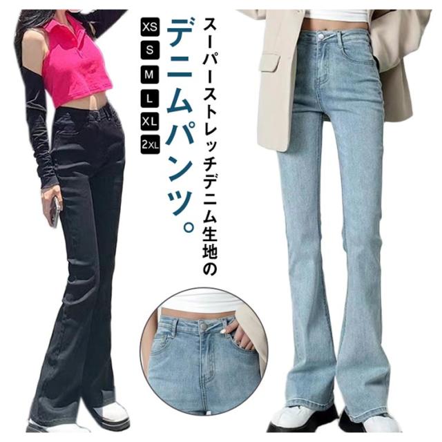 | スーパーストレッチデニム生地のデニムパンツ。 伸縮性あるデニム生地なので、ラクラクフィットで履き心地Good! 今年一押しのフレアーパンツスタイル♪ 選べる3丈!サイズは3サイズ展開!! | |