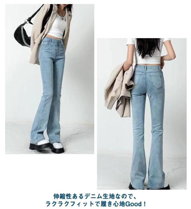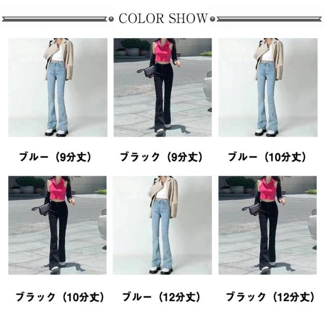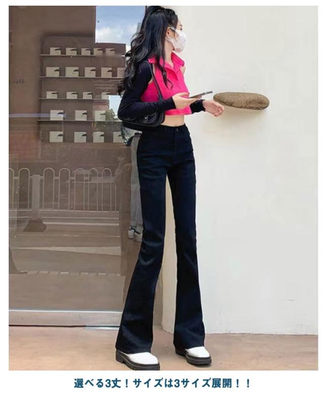 選べる3丈 デニムパンツ レディース ストレッチ フレア デニム パンツ ズボン パンツ フレアデニム フレアパンツ ジーパン ジーンズ レギパン フルレングス 美脚 脚長 黒 流行 きれいめ 大人 コーデ きれいめカジュアル おしゃれ 可愛い
