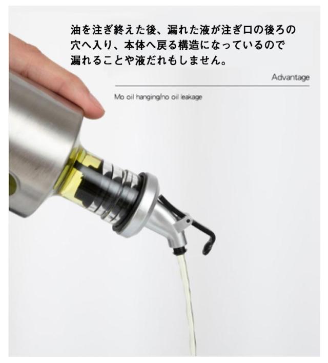 | ボトル部分には刻みの目盛りがついています。 オイルだけではなく、醤油や他の調味料用にも計らずに注げて、便利です。 油を注ぎ終えた後、漏れた液が注ぎ口の後ろの穴へ入り、本体へ戻る構造になっているので漏れることや液だれもしません。 大きな開口部デザインで、注ぎやすい、洗いやすい。 | |