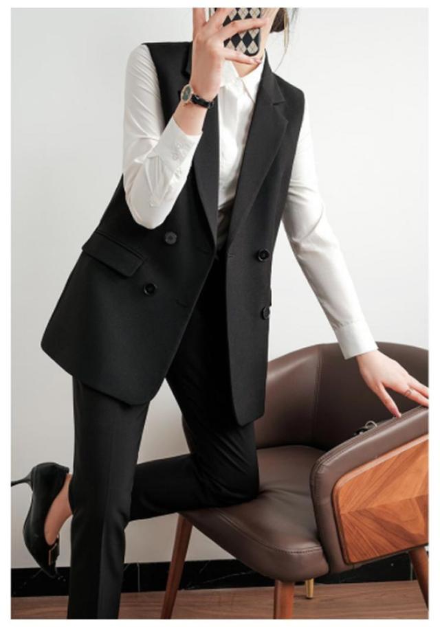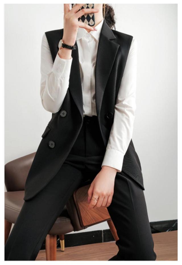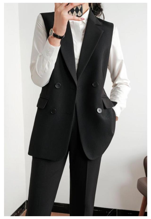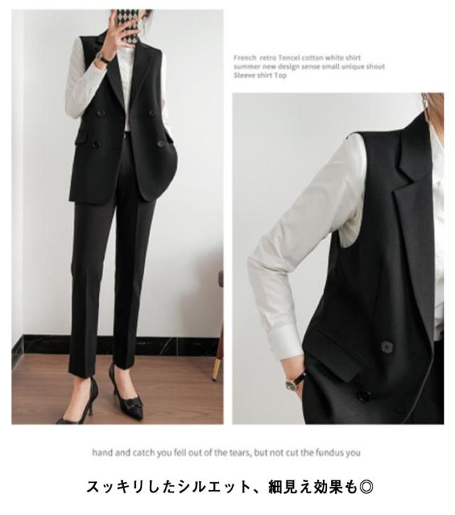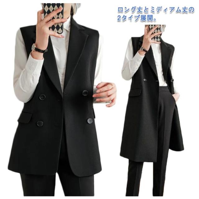 ジレベスト ミディアム丈 ロングジレ レディース ロングベスト 送料無料 ダブルボタン スーツベスト 前開き テーラードベスト 通勤 オフィス 細見え