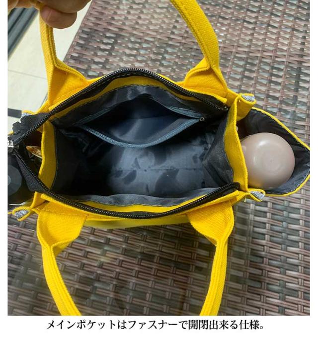 | デイリーからお出かけまで幅広く使えるのが嬉しいミニトートバッグ。 仕切りがあるので荷物を綺麗に整理整頓して入れられます。 大きめのポーチやランチボックスも入るメイン収納部分など見た目以上の収納力と機能性。 ペットボトルを入れるのに便利な縦型収納。 通勤、通学やお出かけなどに使いやすいサイズ感なので、年齢問わず使えるバッグです。 | |