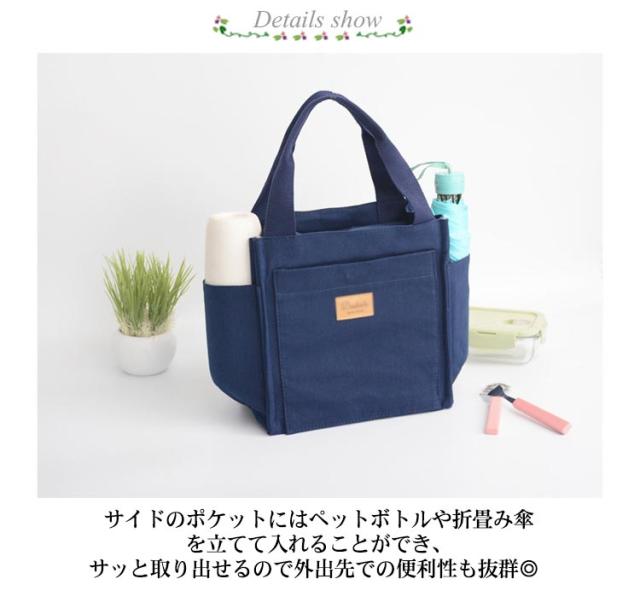 | ポケットが充実したミニトートバッグが登場! しっかりとマチがあるので見た目によらず沢山入るのが魅力的。 長財布や、ポーチ、ランチボックスなどすっぽり入ります。 両サイドのポケットは大きめに作られれているので500mlのペットボトルや、水筒、折りたたみ傘などが入れられます。 通勤、通学やお出かけなどに使いやすいサイズ感なので、年齢問わず使えるバッグです。 | |