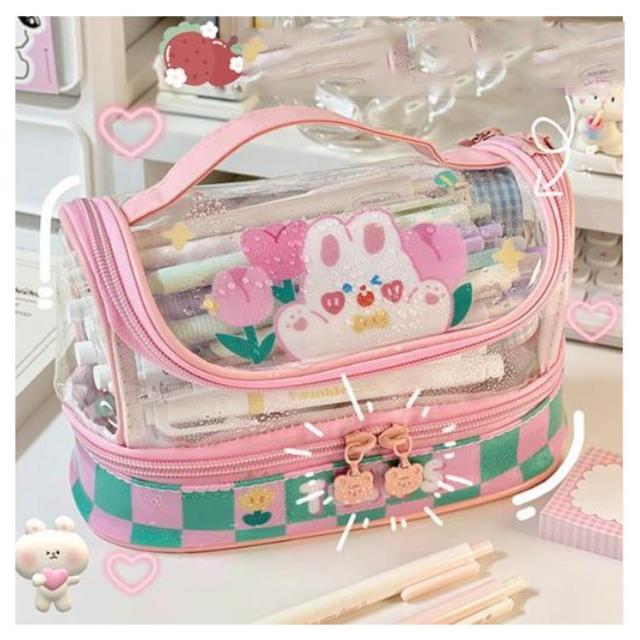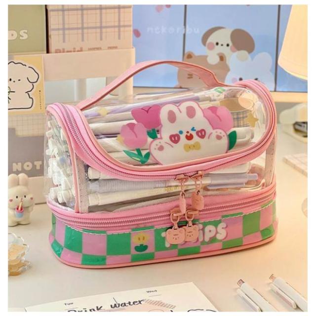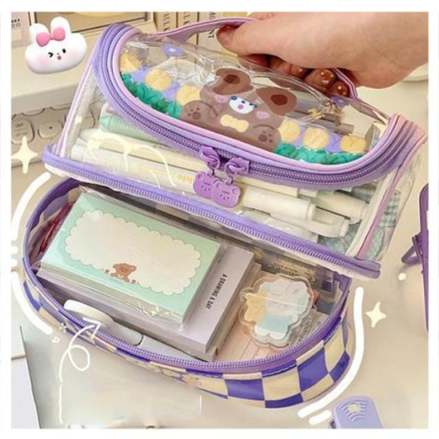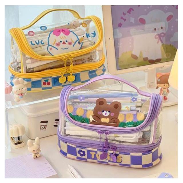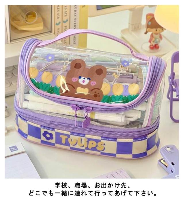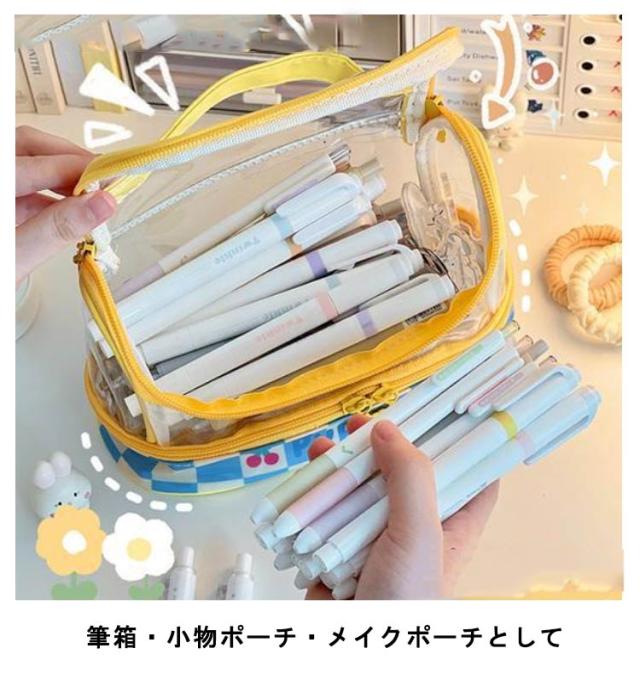 【送料無料】ペンケース 筆箱 ふで箱 クリア 透明ペンケース ペン80本収納可能 防水 清潔簡単 韓国風 大容量 コスメポーチ 文具 小物入れ PVC おしゃれ ふでばこ 韓国 可愛い メンズ レディース 韓国ファッション