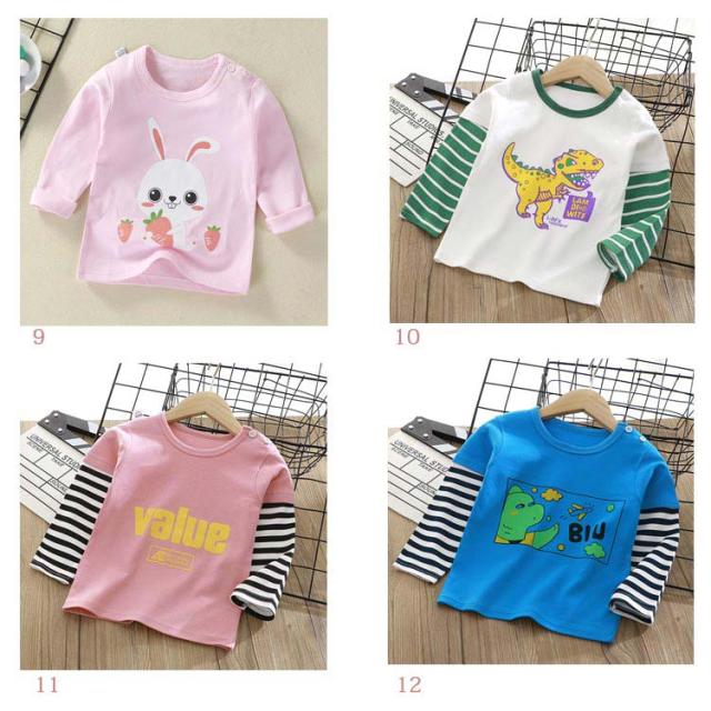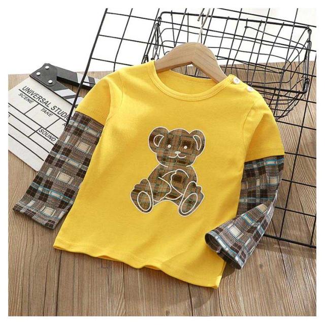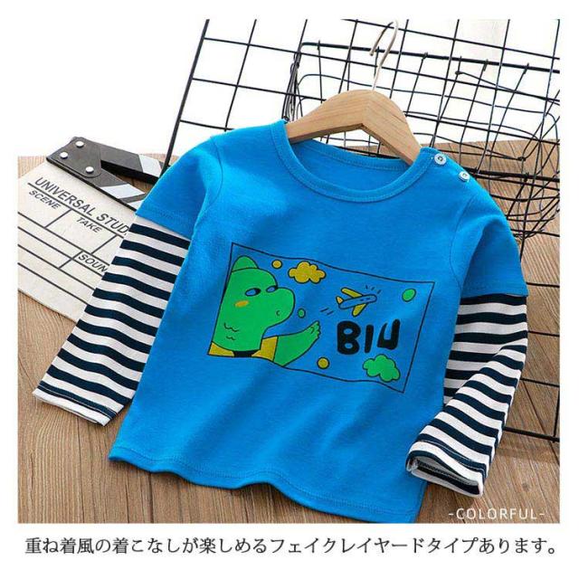 キッズ 長袖Tシャツ 綿 カットソー 男の子 春秋 幼児 ベビー服 73 80 90 100 110 120 130cm トップス 男児 女の子 赤ちゃん 肩ボタン フェイクレイヤード 子供服 おしゃれ かわいい コットン 女児 幼稚園 丸首 送料無料