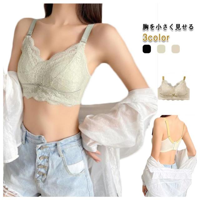 インナー ナイトブラ 胸を小さく見せる ノンワイヤー 大きいサイズ ブラ レース 垂れ防止 かわいい 締め付けない 痛くない おやすみブラ レース 後ろホック プチプラ 脇高 脇肉 ノンワイヤーブラ おすすめ 20代 30代 送料無料